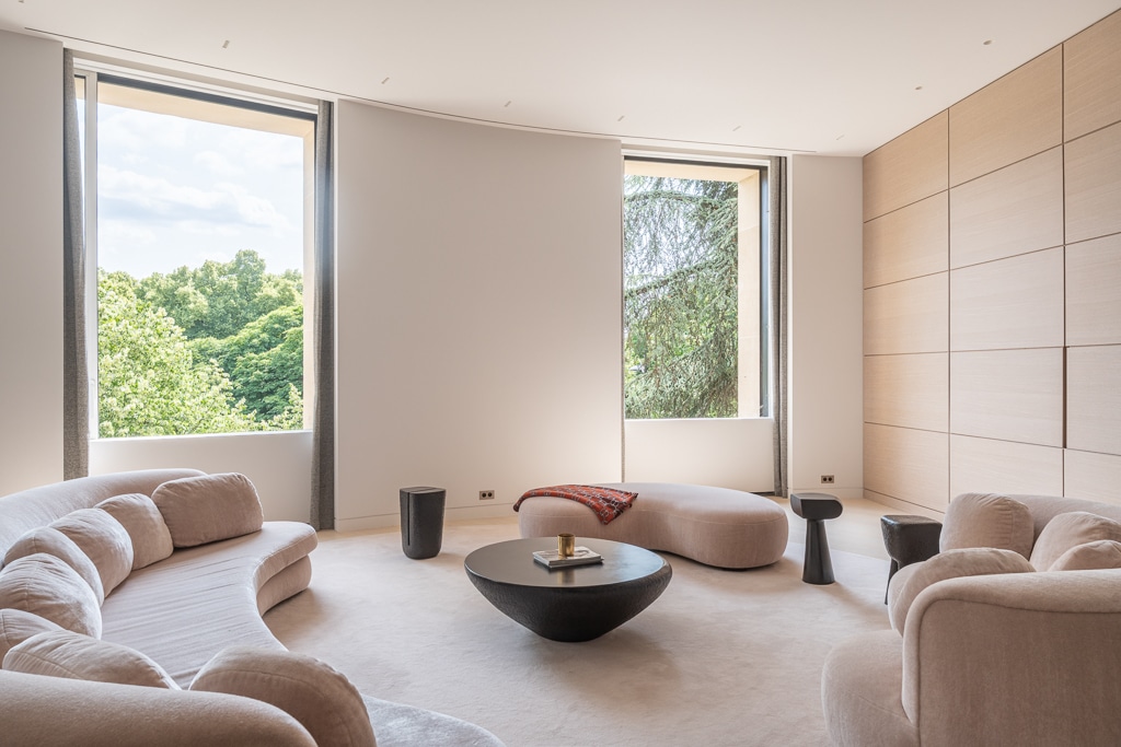 A quelques mètres du bois de Boulogne, Paris XVI. Dans un immeuble prestigieuse 1930 aux parties communes art déco, au deuxième étage avec ascenseur, un appartement de 409 m² entièrement repensé par un architecte de renom. Bénéficiant de volumes extraordinaires, il comprend une entrée, un salon /salle à manger aux baies vitrées donnant sur des arbres, une bibliothèque, un grand bureau, une vaste cuisine disposant d’un espace repas et de plusieurs caves a vin, trois superbes suites, une salle de sport. Plusieurs annexes.