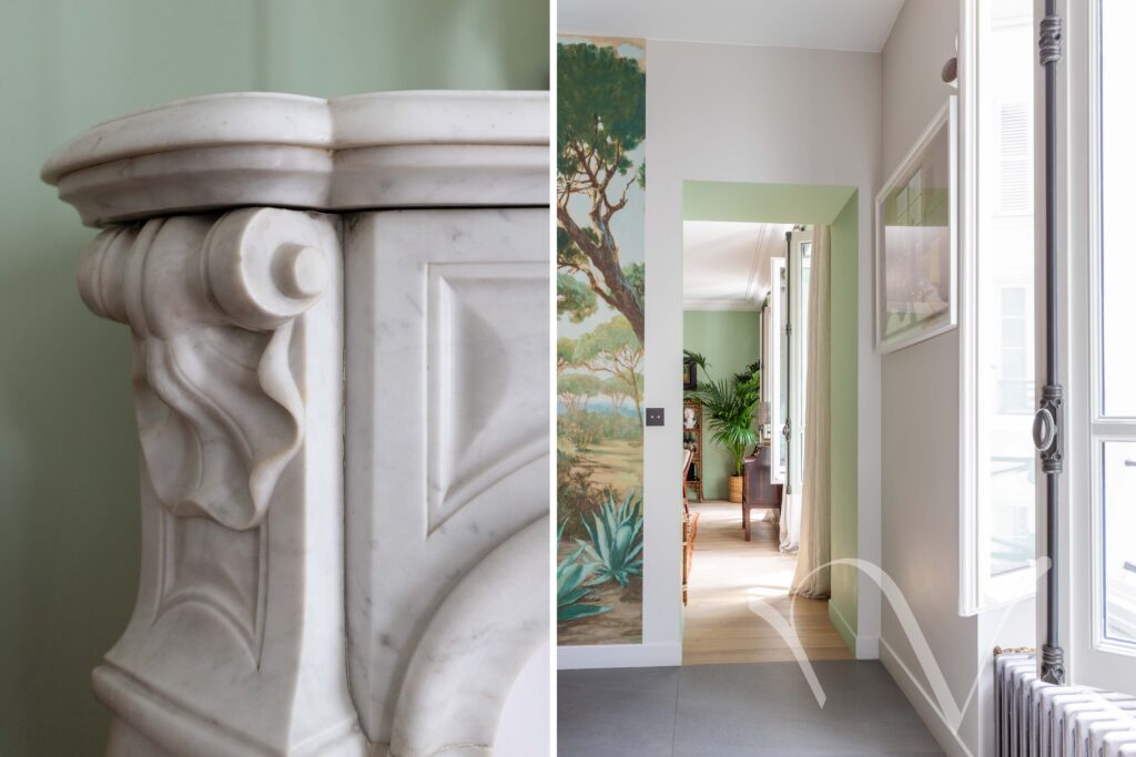A deux pas du Bon Marché, du jardin de Catherine Labouré, dans un ancien hôtel particulier élevé pour partie au XVIIIe siècle, un appartement comme une maison qui se développe sur trois niveaux.
