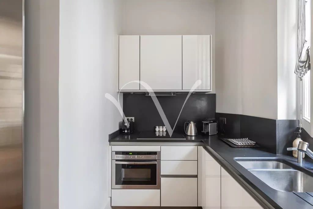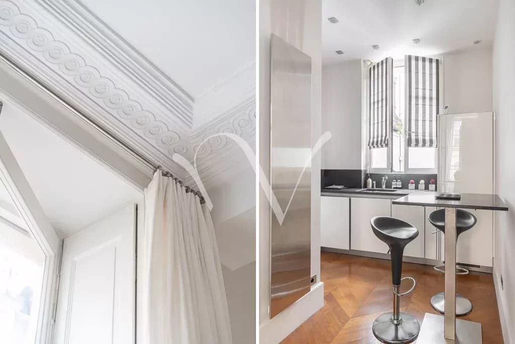 Idéalement situé au cœur de Saint-Germain-des-Prés et à deux pas de la place de l’Odéon et du jardin du Luxembourg, un appartement intégralement rénové de 69,22 m² loi Carrez et 70,82 m² au sol, au deuxième étage avec ascenseur d’une jolie copropriété. Il se compose d’un salon avec une très belle hauteur sous plafond, une chambre sur cour, un dressing, une cuisine et une salle d’eau.