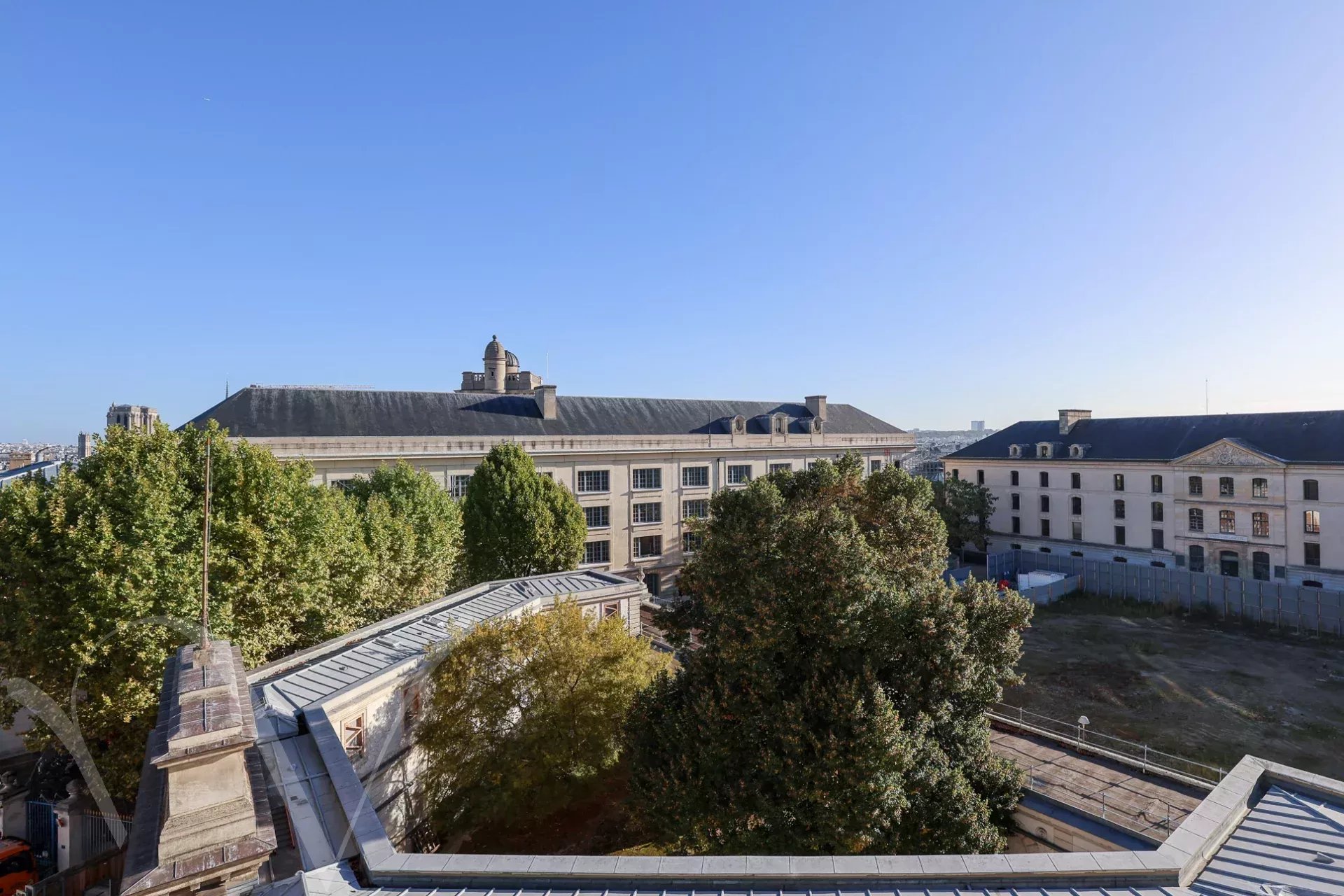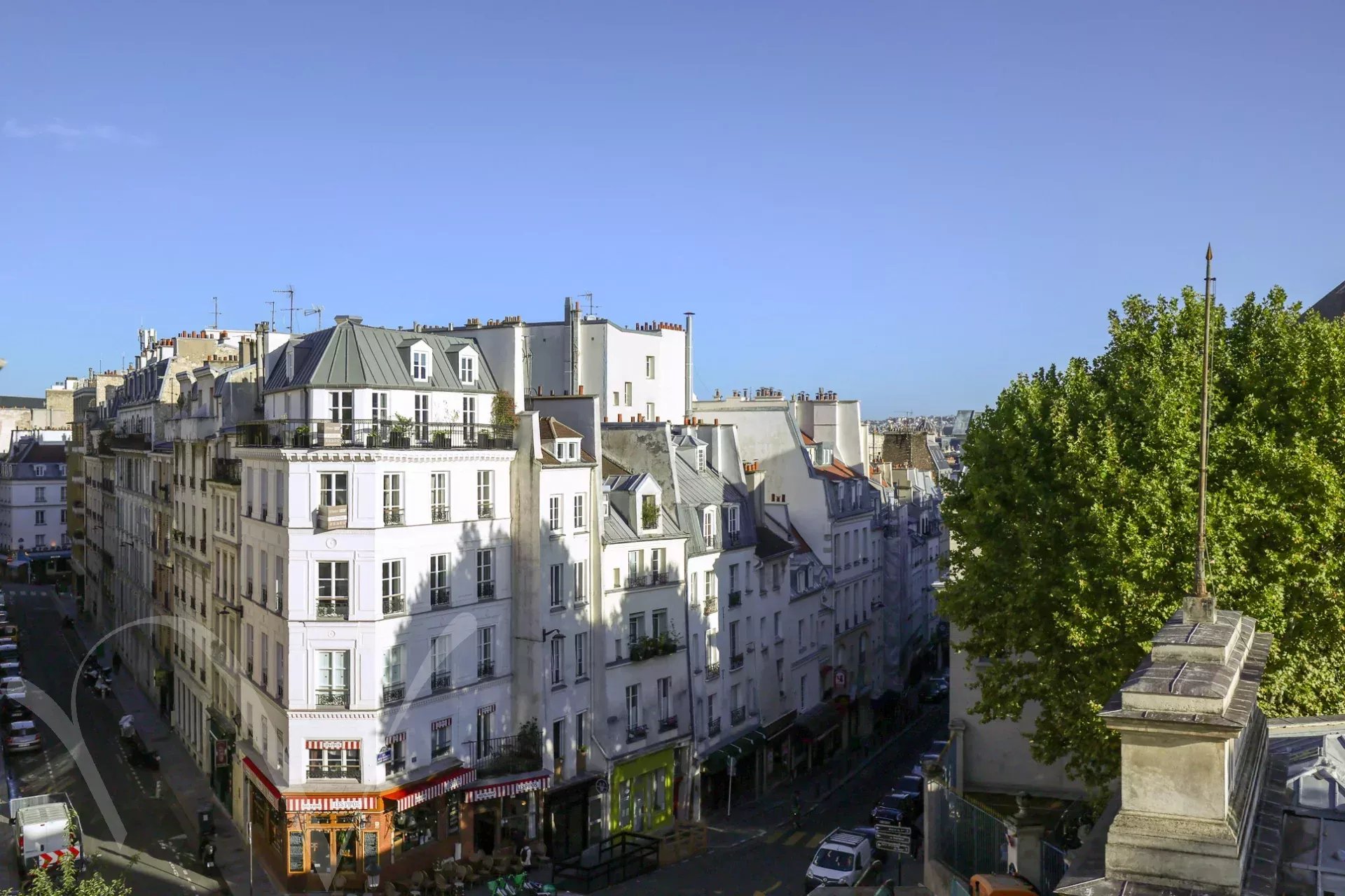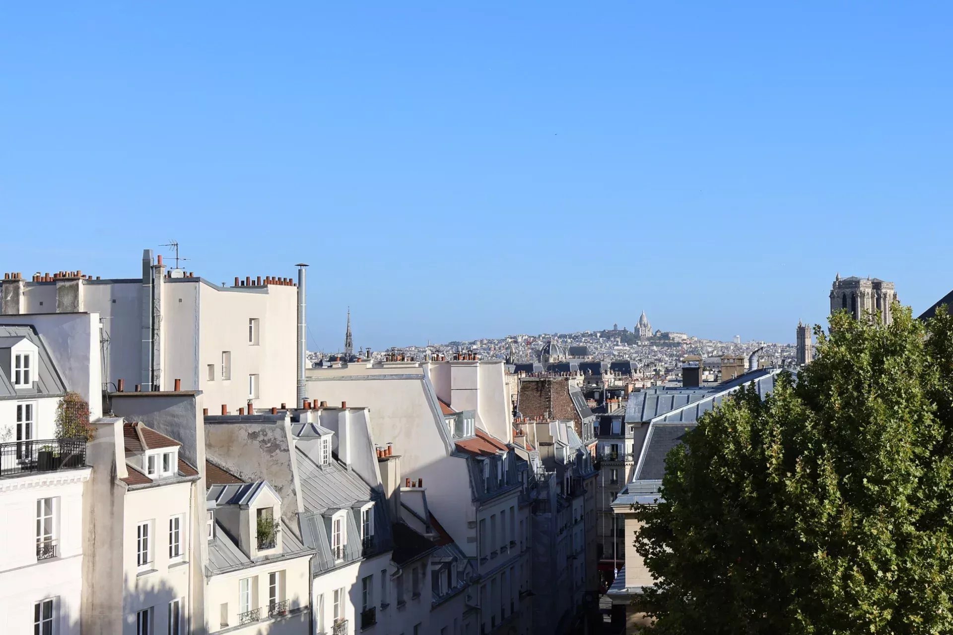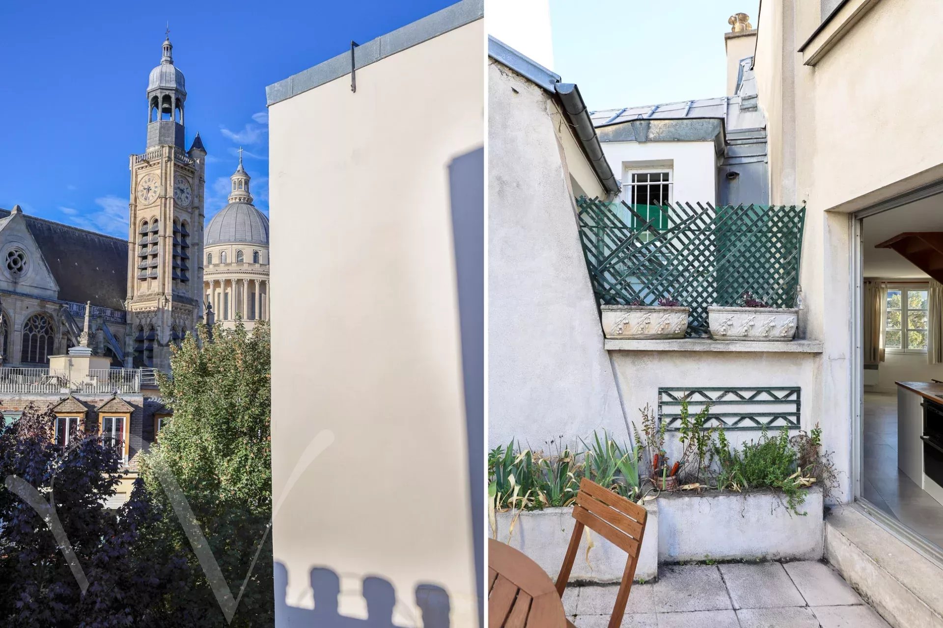 Superbe appartement situé Rue Descartes, dans un charmant petit immeuble du 19e siècle, au 5e et dernier étage avec ascenseur. Ce duplex de 43,72 m² loi Carrez (45 m² au sol) dispose d’une terrasse de 18 m² offrant une vue panoramique sur les monuments de Paris.