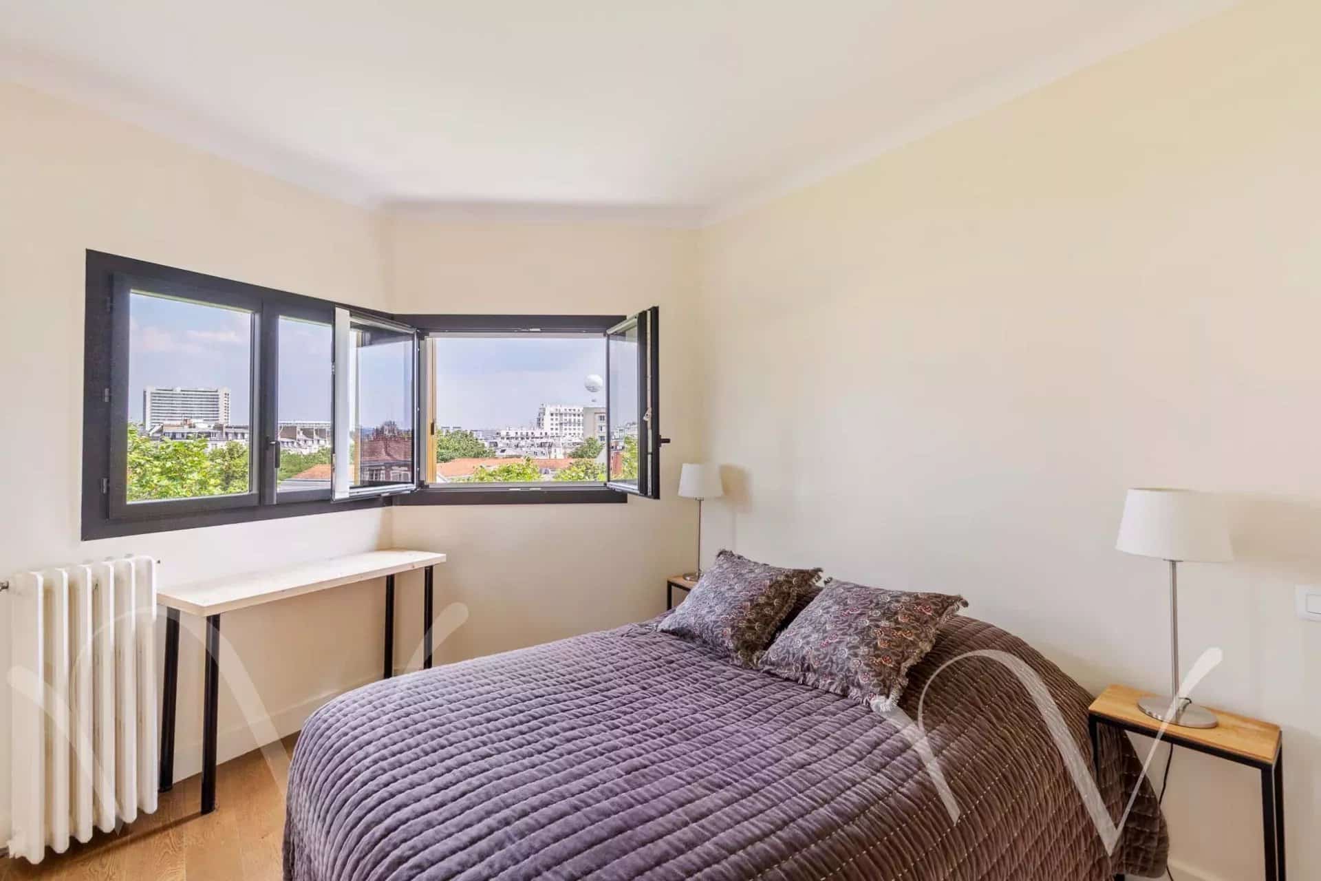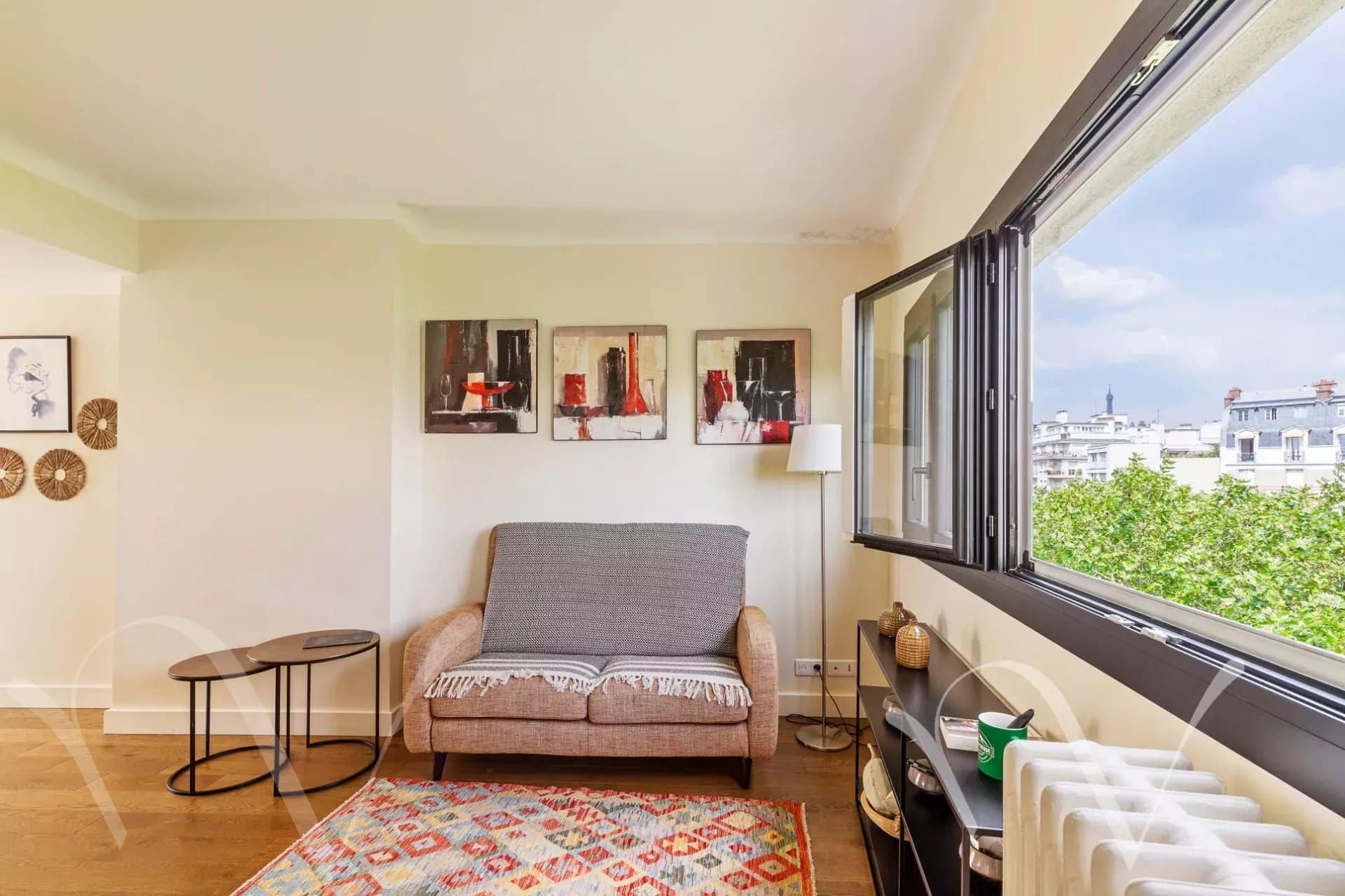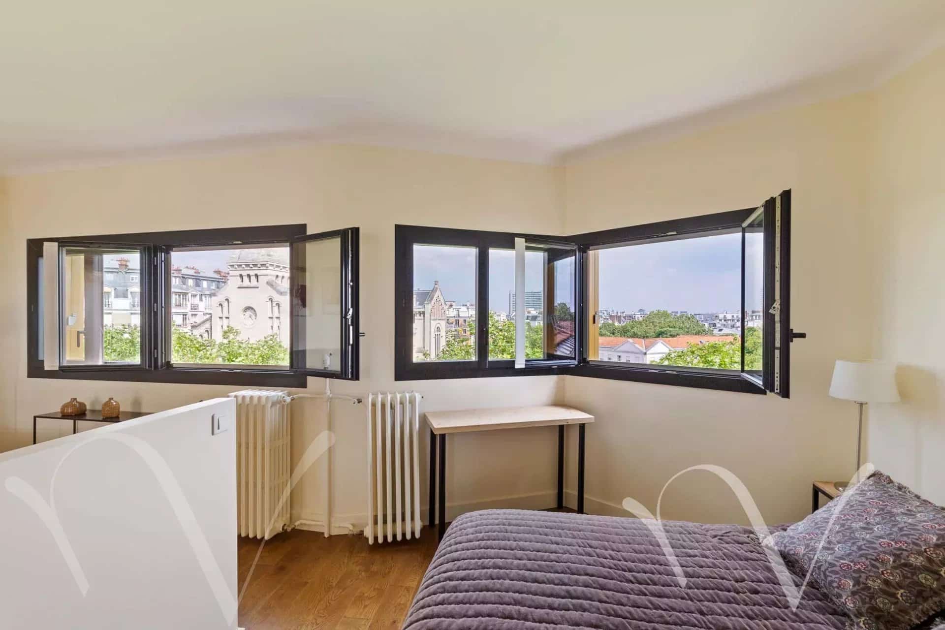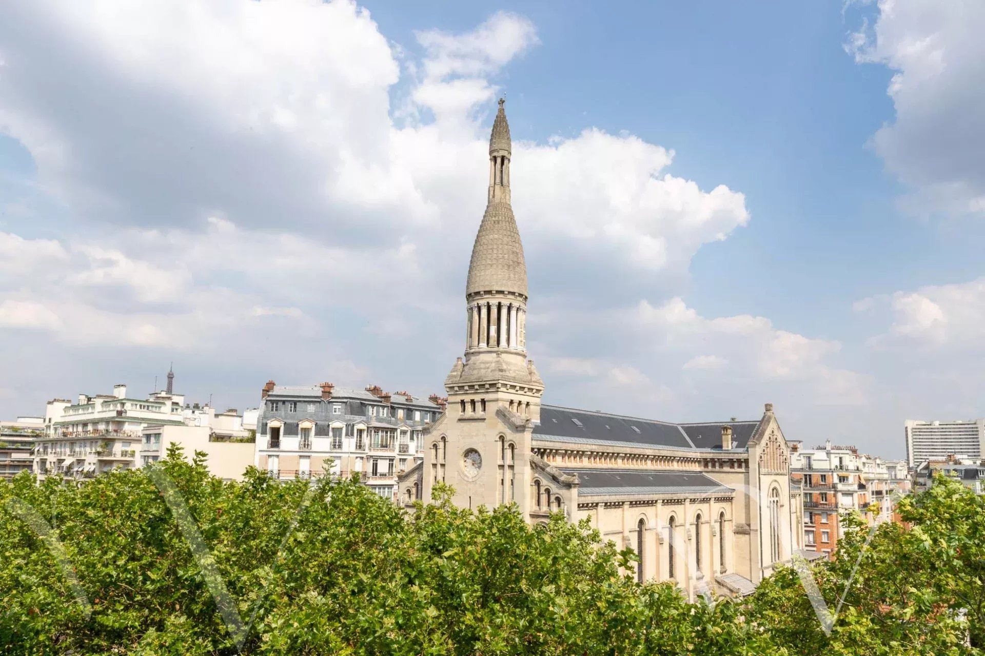 L’appartement est agrémenté d’une terrasse de plain-pied orientée sud de 12 m². Il bénéficie d’une jolie vue dégagée sur Paris et sur l’Eglise Notre Dame d’Auteuil, baigné de soleil, calme. Une cave en sous sol complète ce bien.