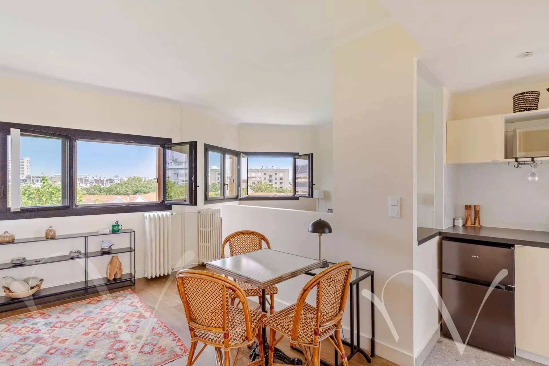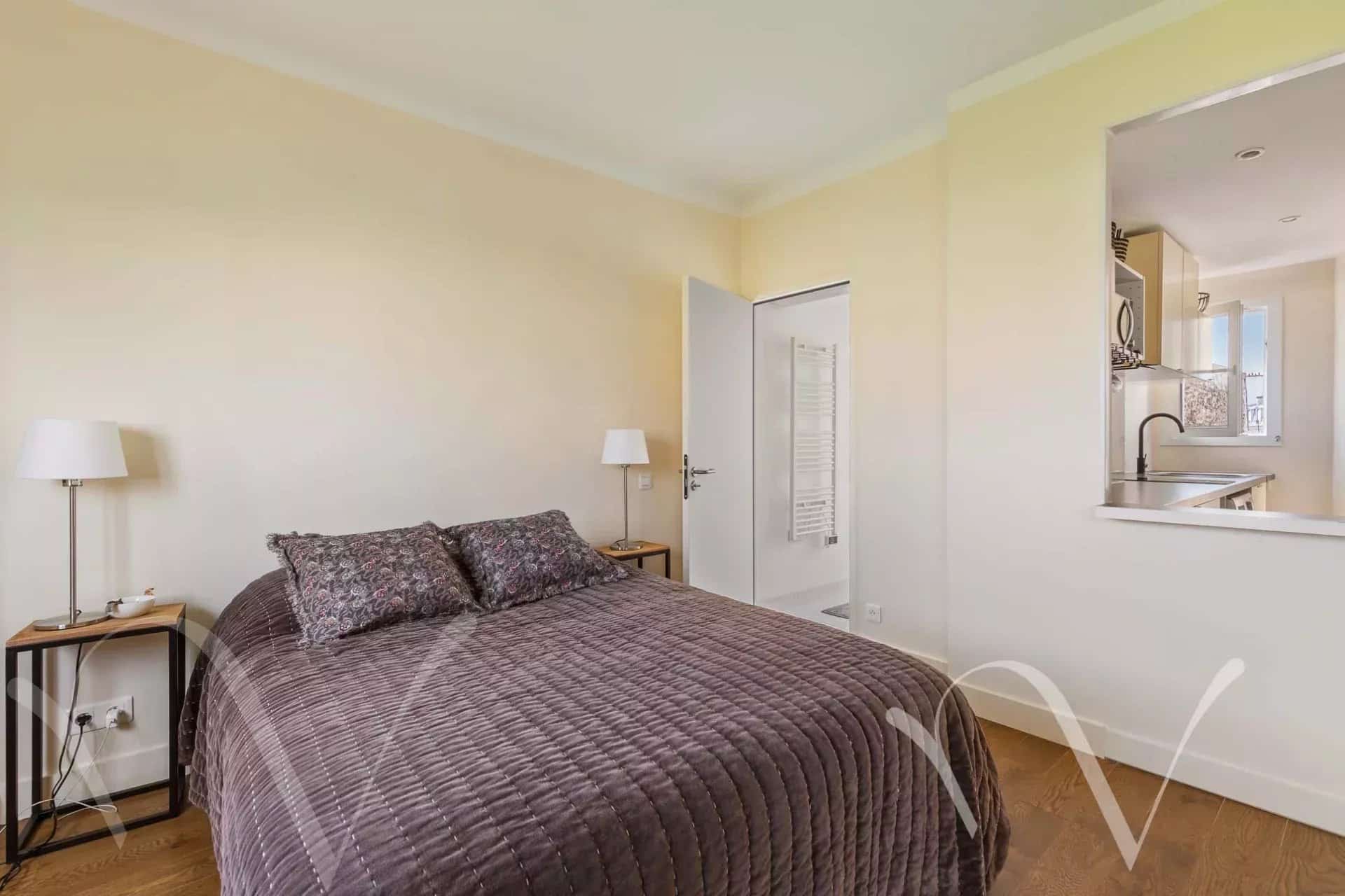 Au pied du métro Eglise d’Auteuil, dans une copropriété des années 30 bien entretenue au 5e et dernier étage accessible par ascenseur jusqu’au 4e, un appartement traversant en parfait état de 35,57 m² loi Carrez comprenant une cuisine, une pièce à vivre avec coin chambre, une salle de douche avec toilette.