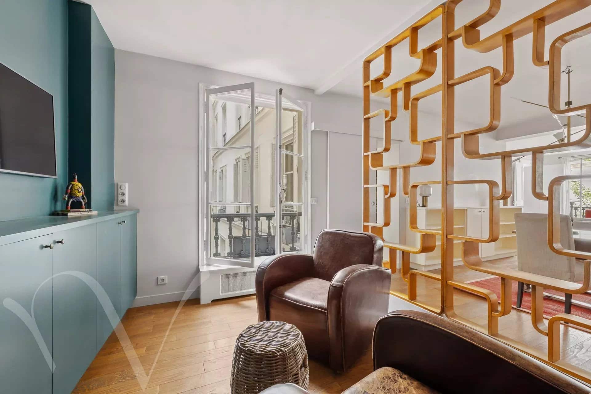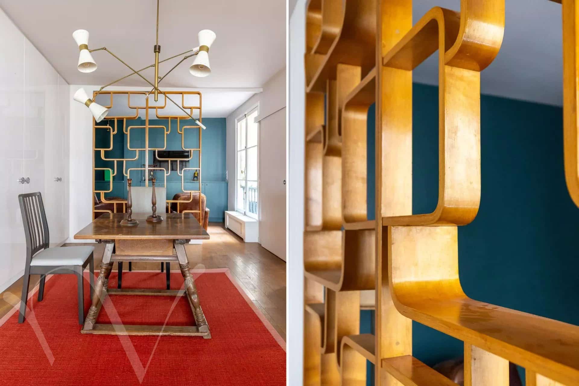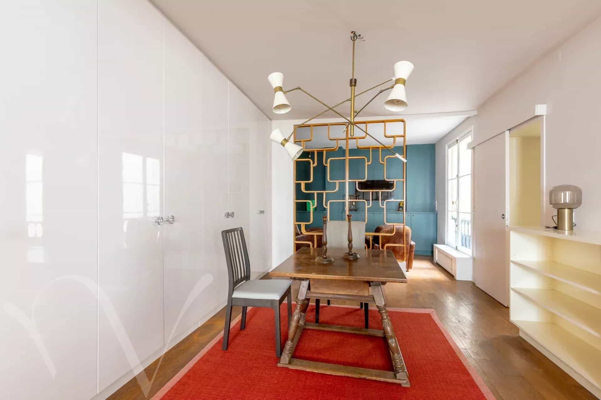 Cet appartement situé à quelques pas de Saint-Germain-des-Prés profite d’une vie de quartier, des commerces de la rue du Bac, et de nombreux restaurants et galeries d’art.