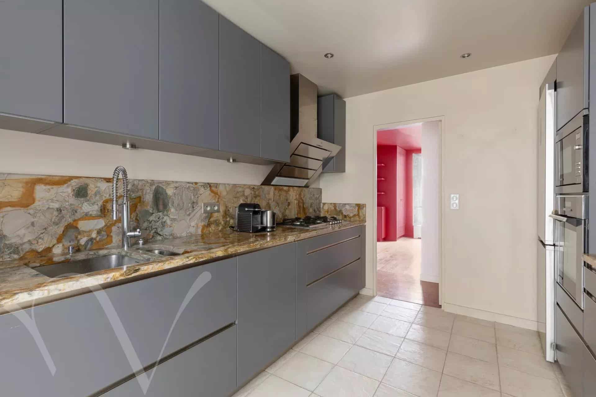 Au coeur du Carré des Antiquaires, dans la mythique rue de Verneuil. Au sein d’une copropriété de charme, un bel appartement familial de 135m² au calme absolu. Au troisième étage par ascenseur, il comprend une entrée, un salon / salle à manger, une bibliothèque, une cuisine, une chambre principale avec dressing et salle de bains, ainsi que deux autres chambres se partageant une salle de bains, une buanderie. En annexe une cave.