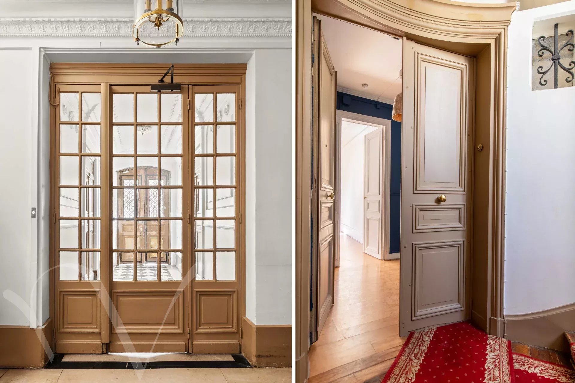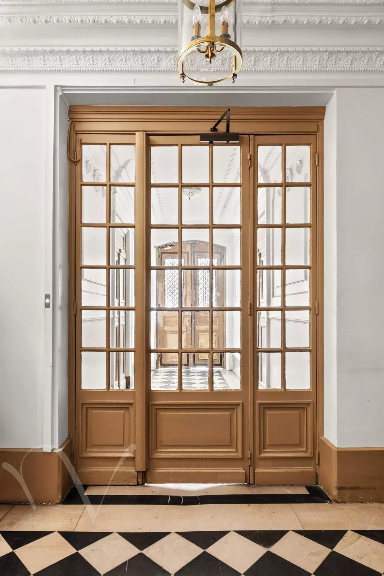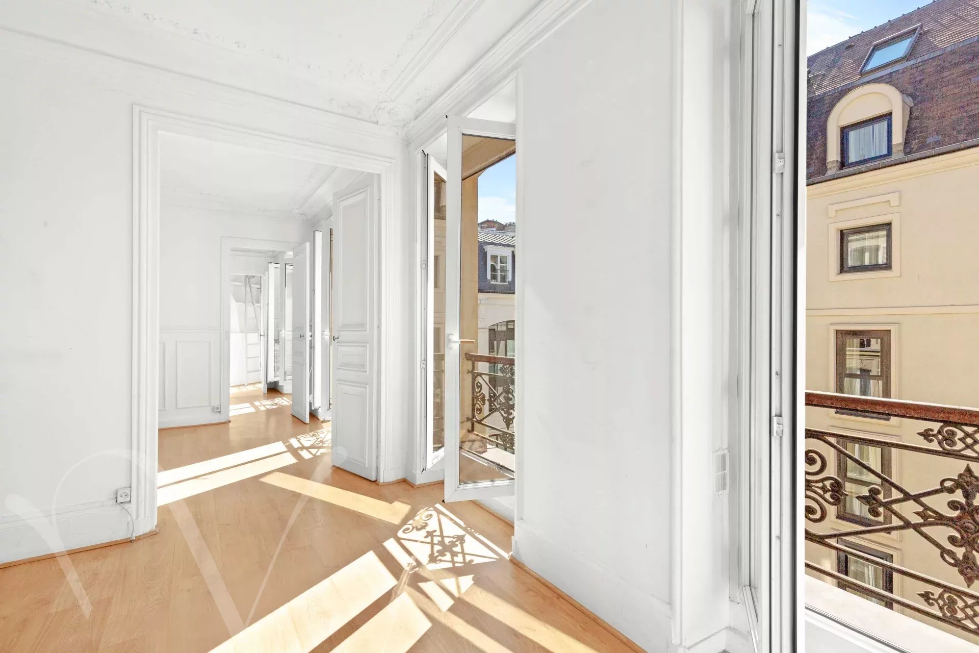 Vendue avec l’appartement pour 65.000€ supplémentaires, une petite chambre avec douche au 6e étage desservi par l’ascenseur principal, d’une surface de 5m² en surface habitable et 7m² au sol. Une cave de 8m². Prix de l’ensemble : 1.290.000€.
