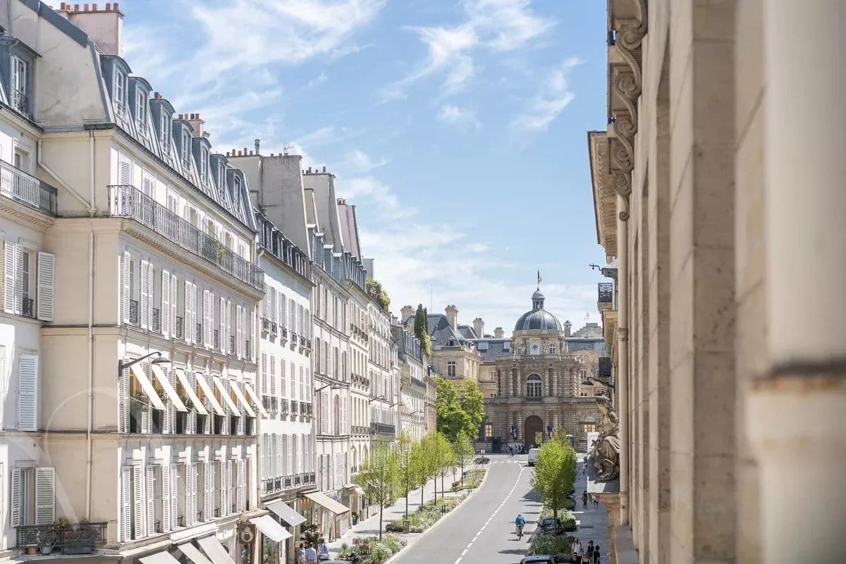 Saint Germain des Prés. Au sein d’un hôtel particulier XVIIIe, à l’étage noble avec ascenseur (premier étage au-dessus de l’entresol), un ravissant appartement de 190 m² loi Carrez et 202 m² au sol composé d’une entrée, un salon, un petit salon (ou troisième chambre – la salle de douche est déjà présente), une suite comprenant une grande chambre avec sa salle de bains et ses dressings, une deuxième chambre avec sa salle de douche, une buanderie. Cet appartement traversant entre rue et cour est en parfait état, il est très élégant avec ses quatre mètres d’hauteur sous plafond, les moulures, le parquet point de Hongrie. Emplacement de premier ordre, entre la Place Saint Sulpice et le Jardin du Luxembourg.