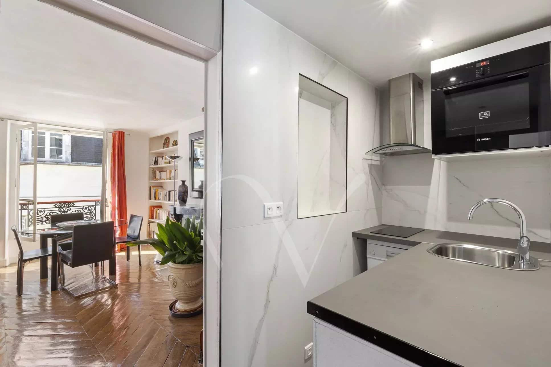Au Cœur de Saint Germain des Près, dans un immeuble XVIe siècle bien entretenu sans ascenseur (avec possibilité de l’installer), au 4e étage, bel appartement de 42m² composé d’une entrée desservant un salon et salle à manger sur rue exposé au sud avec deux grandes fenêtres, une cuisine attenante, une chambre au calme sur cour, une salle de douche avec toilettes.