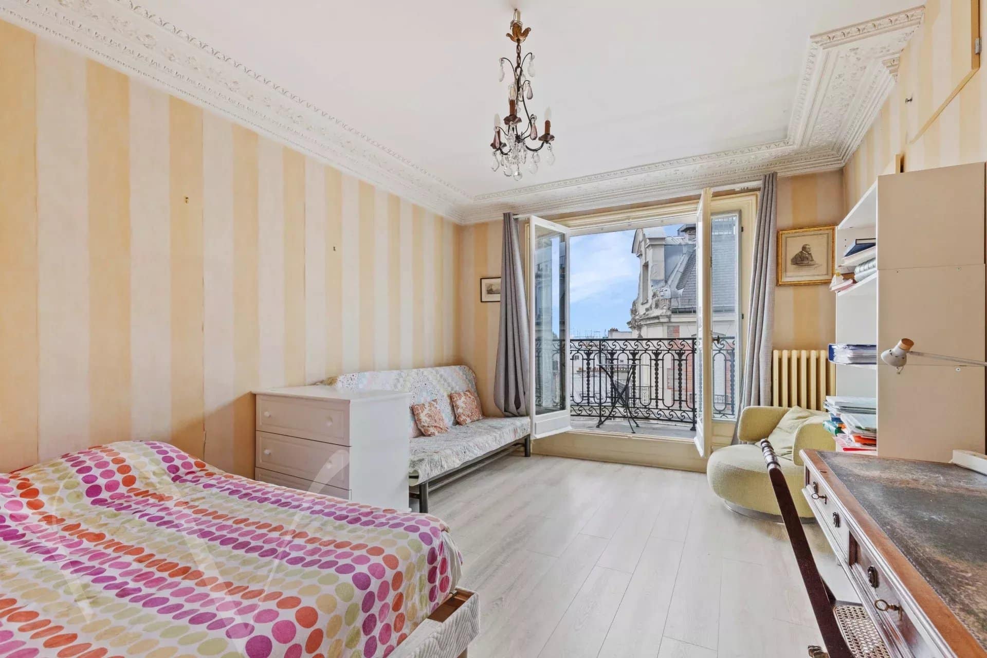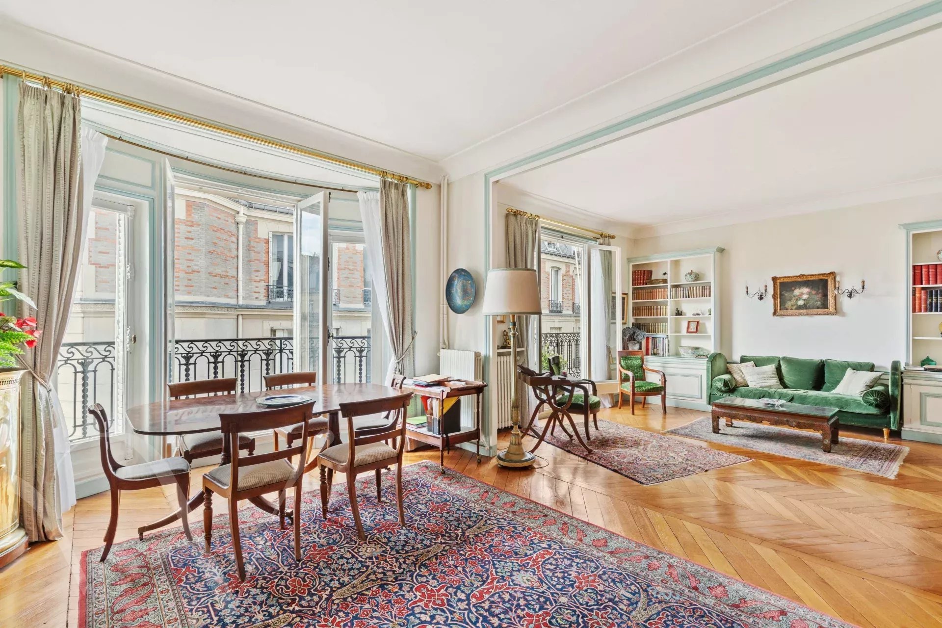 Rue de Luynes, au cœur de cette jolie rue, au cinquième étage avec ascenseur d’un bel immeuble en pierre de taille, un appartement familial de 193.44 m² loi Carrez et 206.50 m² au sol. Il se compose : au cinquième étage, entrée, salon, salle à manger, cuisine, bureau, deux chambres, une salle de bains et wc séparés. Au sixième étage, relié par un escalier intérieur, deux chambres supplémentaires, une salle de douche avec WC et une buanderie. Sur le même palier, relié à l’appartement ou indépendant, un petit studio sous les toits. Beaux volumes au cinquième étage avec 3.10 mètres d’hauteur sous plafond. L’appartement est clair et offre des vues sur les toits et dégagées. Appartement élégant, idéalement situé au cœur du quartier Bac-Grenelle.